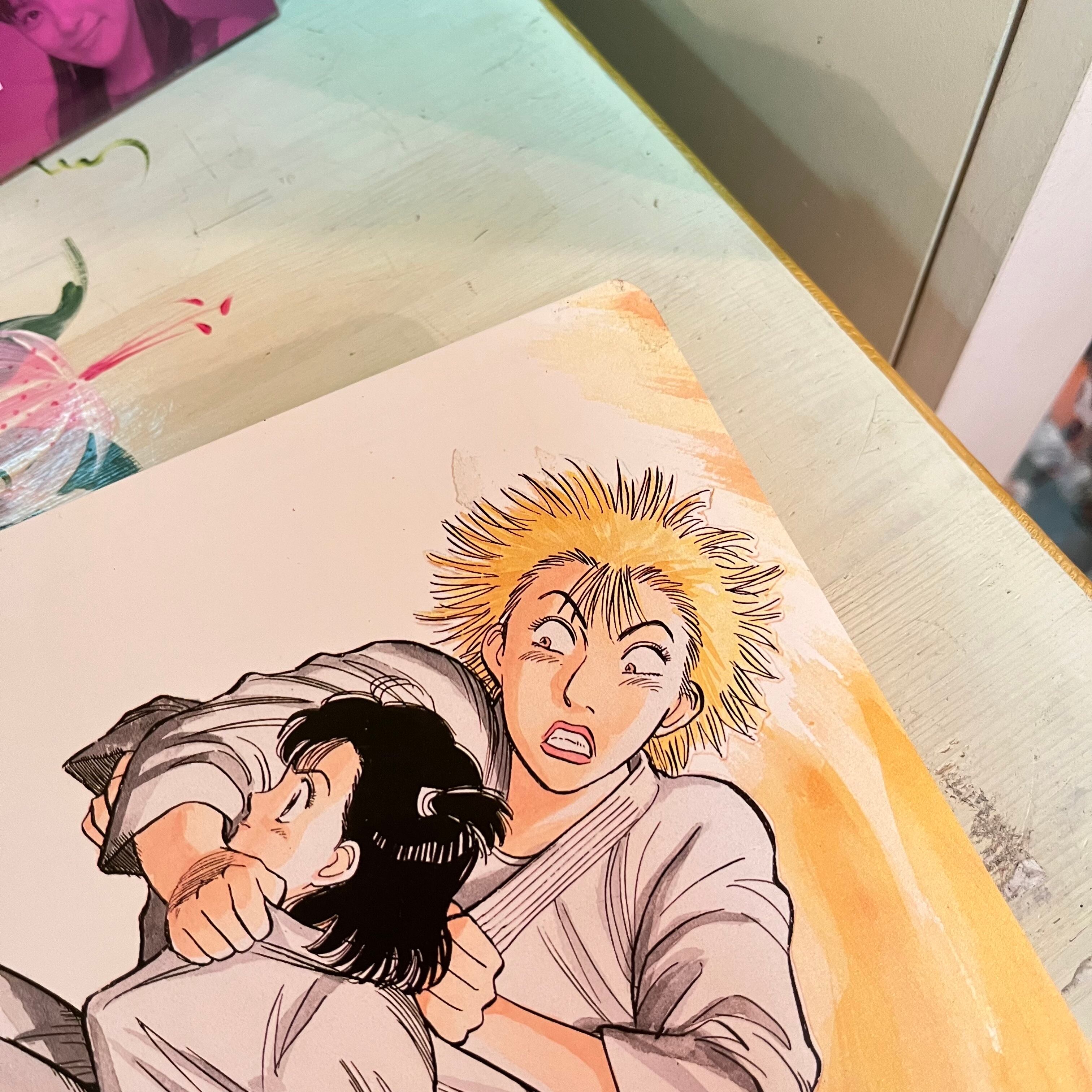 YAWARA! の下敷きで表面は、ヤワラちゃんが投げ飛ばしているダイナミックなシーンです。