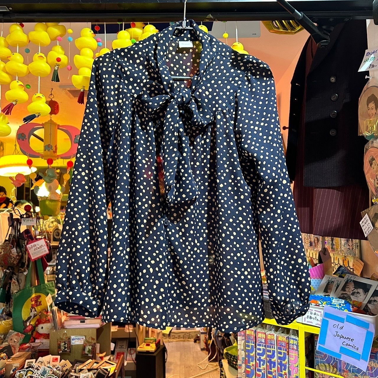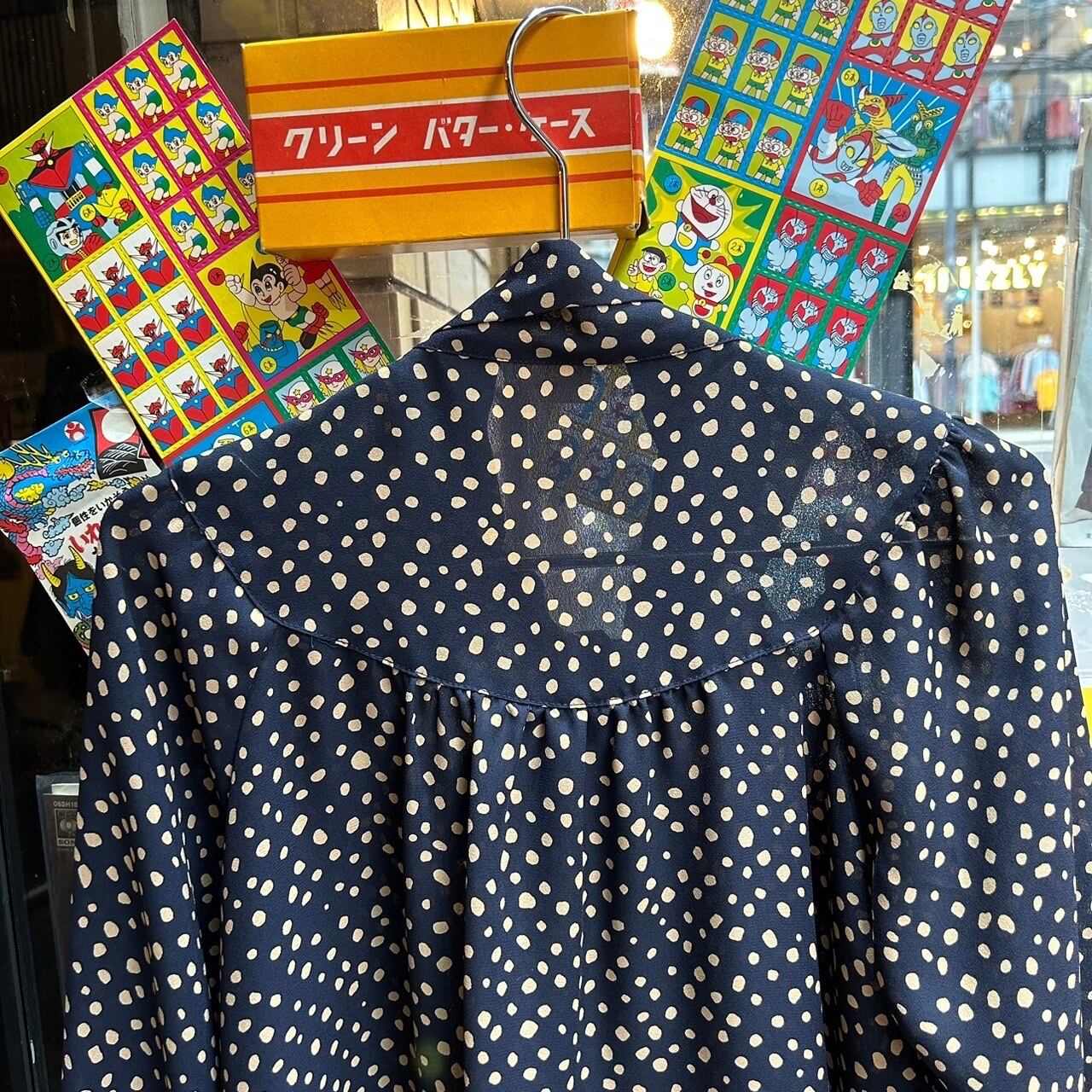 ドットのリボンブラウス